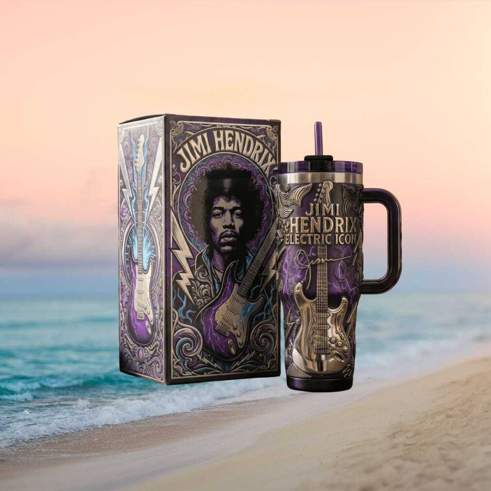 Jimi Hendrix Electric Icon 3D Embossed Purple Psychedelic Rock Tumbler, Treat yourself or make a great gift for your loved ones