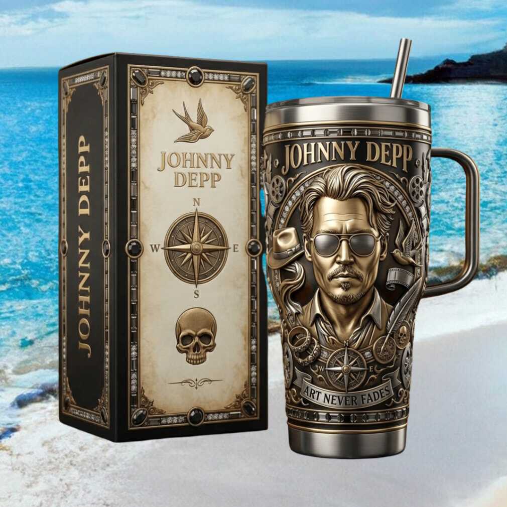 (Johnny Depp “Art Never Fades” Pirate & Compass Luxury Tribute Tumbler)Johnny Depp “Art Never Fades” Pirate & Compass Luxury Tribute Tumbler, Treat yourself or make a great gift for your loved ones