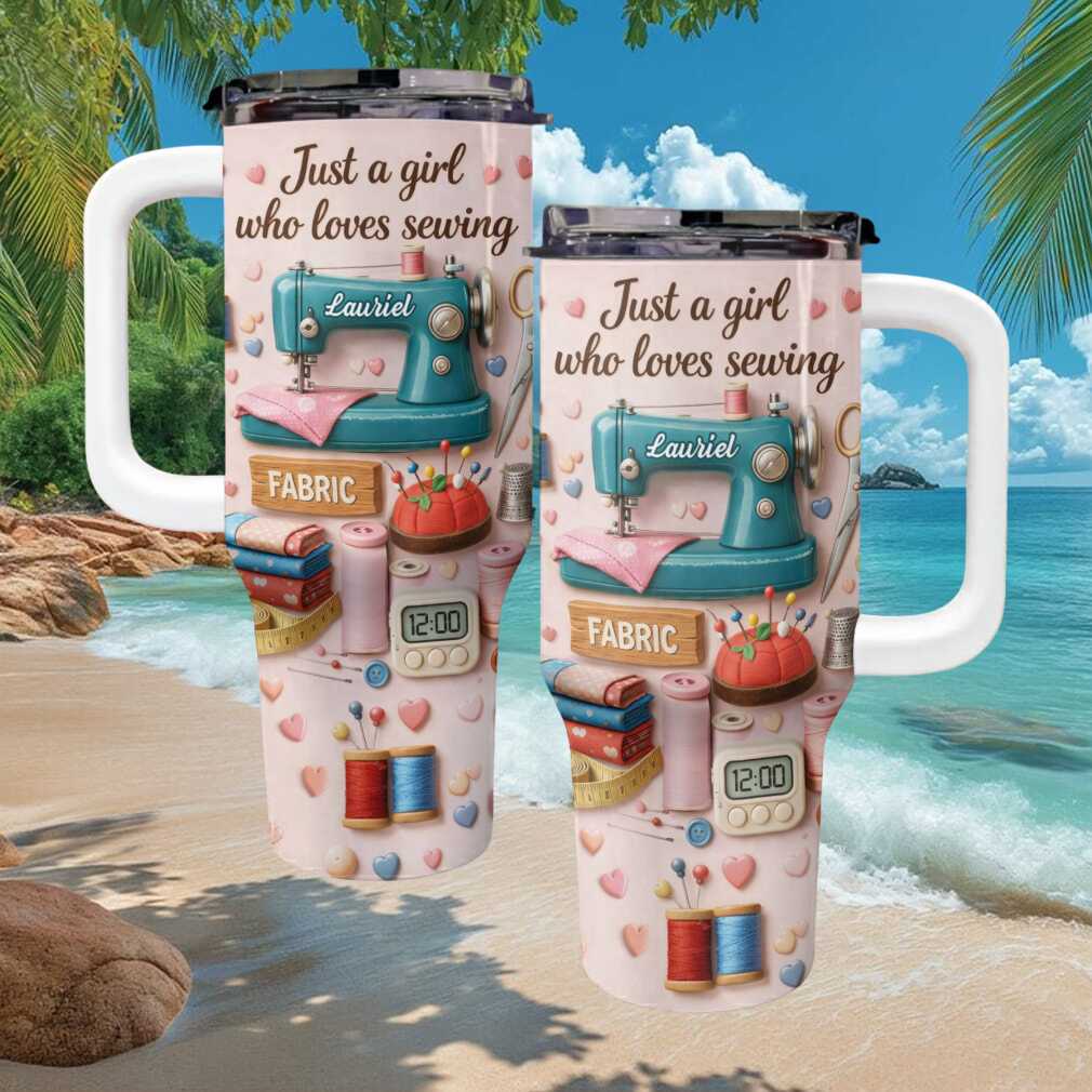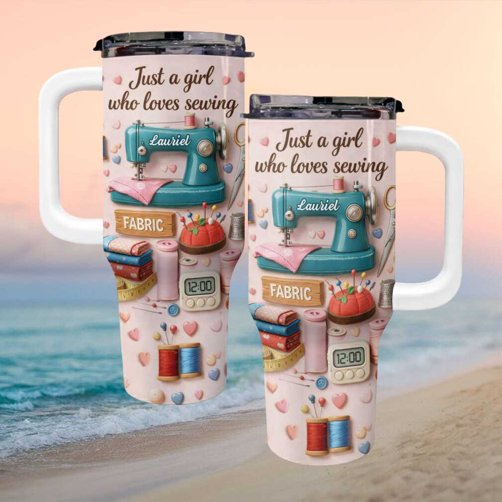 🥤 About Just A Girl Who Loves Sewing Personalized Floral Quilt Theme Tumbler