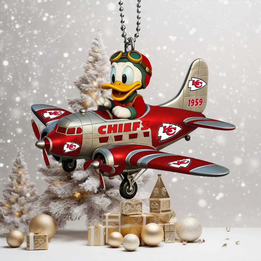 🥤 About Kansas City Chiefs NFL Disney Donald Duck Aircraft Ornament