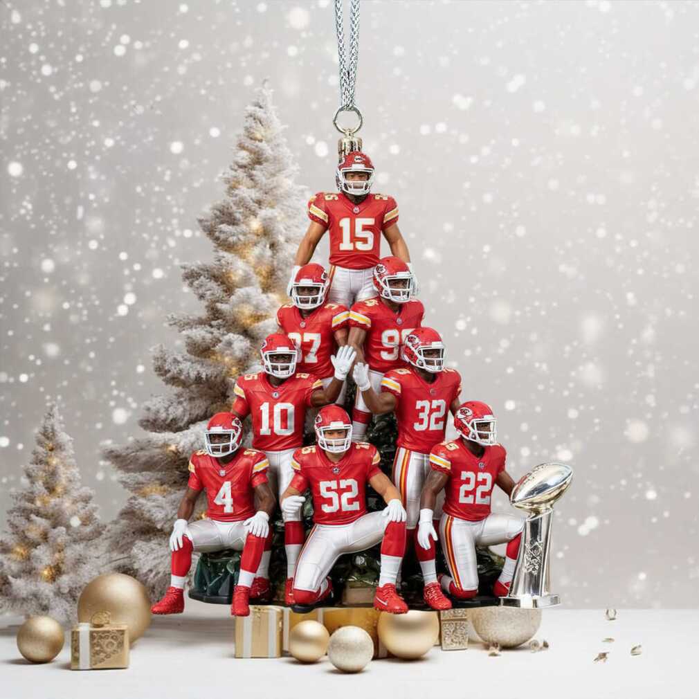 Celebrate the Kansas City Chiefs’ Super Bowl victory with this unique player pyramid ornament! This special ornament captures the excitement of the championship season and is a must-have for any dedicated Chiefs fan. Add a touch of team pride to your Christmas tree this holiday season.