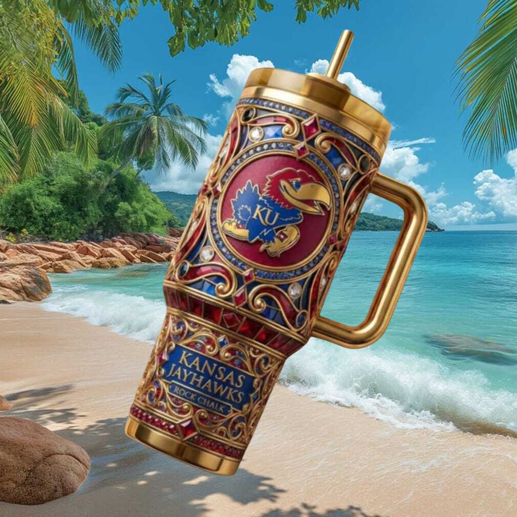 (Kansas Jayhawks Rock Chalk KU Basketball Championship Gold Jeweled Tumbler)Kansas Jayhawks Rock Chalk KU Basketball Championship Gold Jeweled Tumbler, Treat yourself or make a great gift for your loved ones