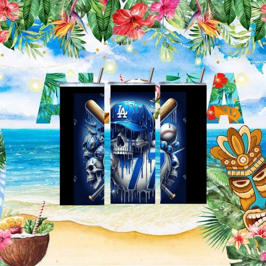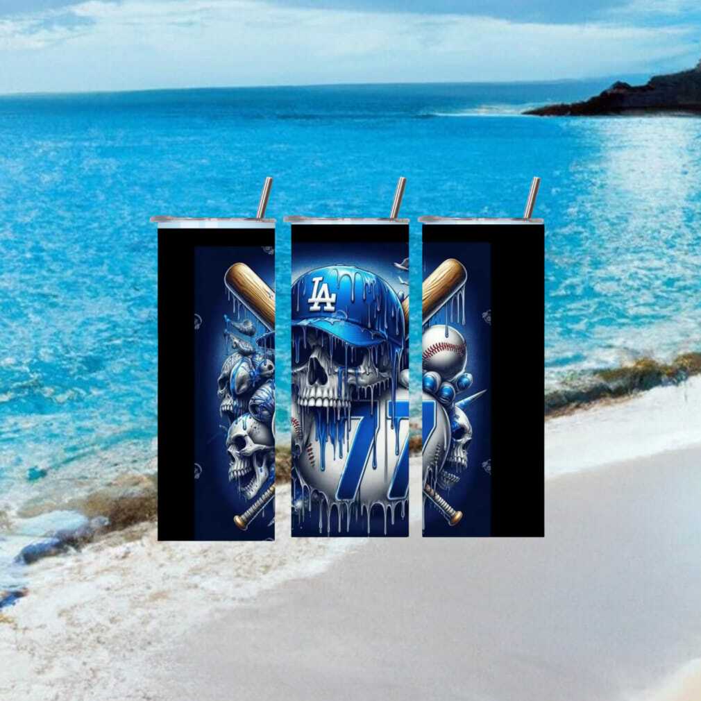 (LA Dodgers Blue Drip Skull and Baseball Bats Tumbler Wrap)LA Dodgers Blue Drip Skull and Baseball Bats Tumbler Wrap, Treat yourself or make a great gift for your loved ones