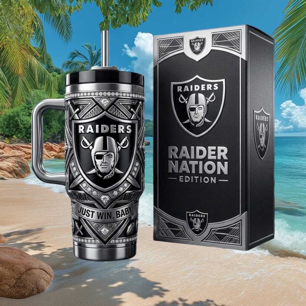 (Las Vegas Raiders Raider Nation Just Win Baby Luxury 40oz Stainless Steel Tumbler)Las Vegas Raiders Raider Nation Just Win Baby Luxury 40oz Stainless Steel Tumbler