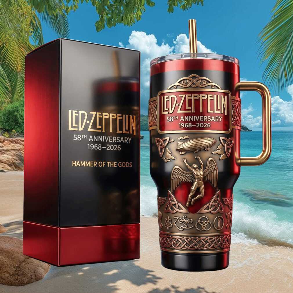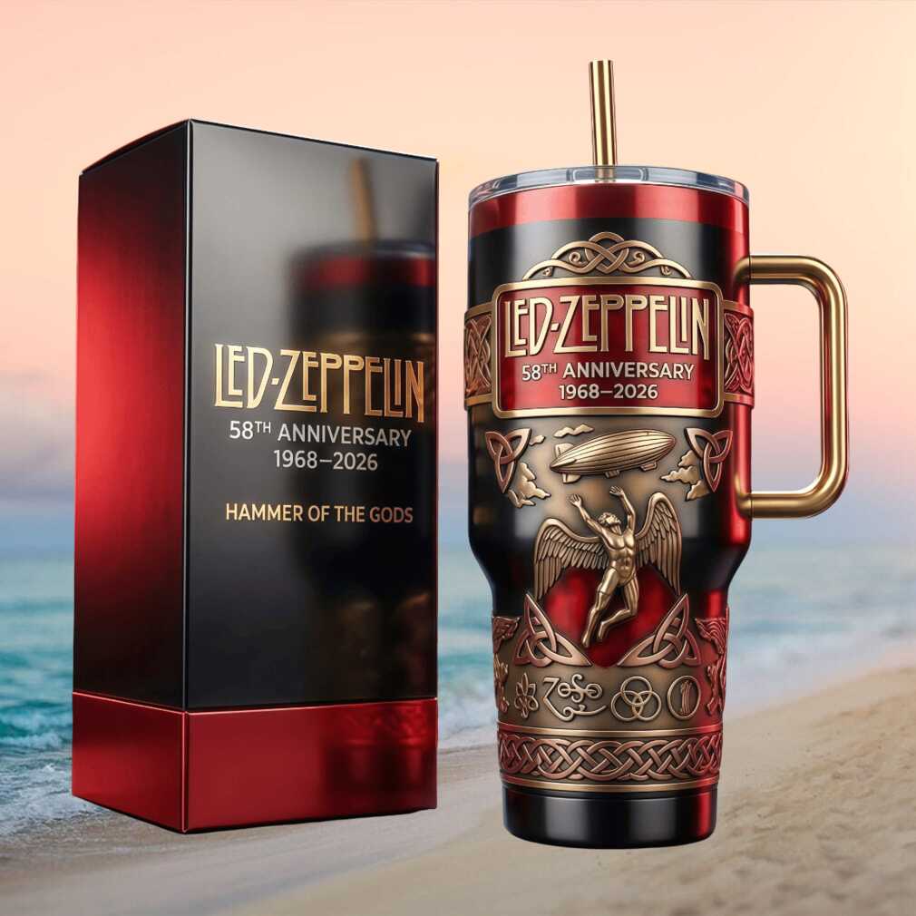 Rock on with this epic 58th anniversary tribute to Led Zeppelin. ‘Hammer of the Gods’ is immortalized in stunning gold and black on this 40oz premium tumbler. Featuring iconic band imagery, this is the ultimate collectible for fans of one of the greatest rock bands in history. 1968–2026.