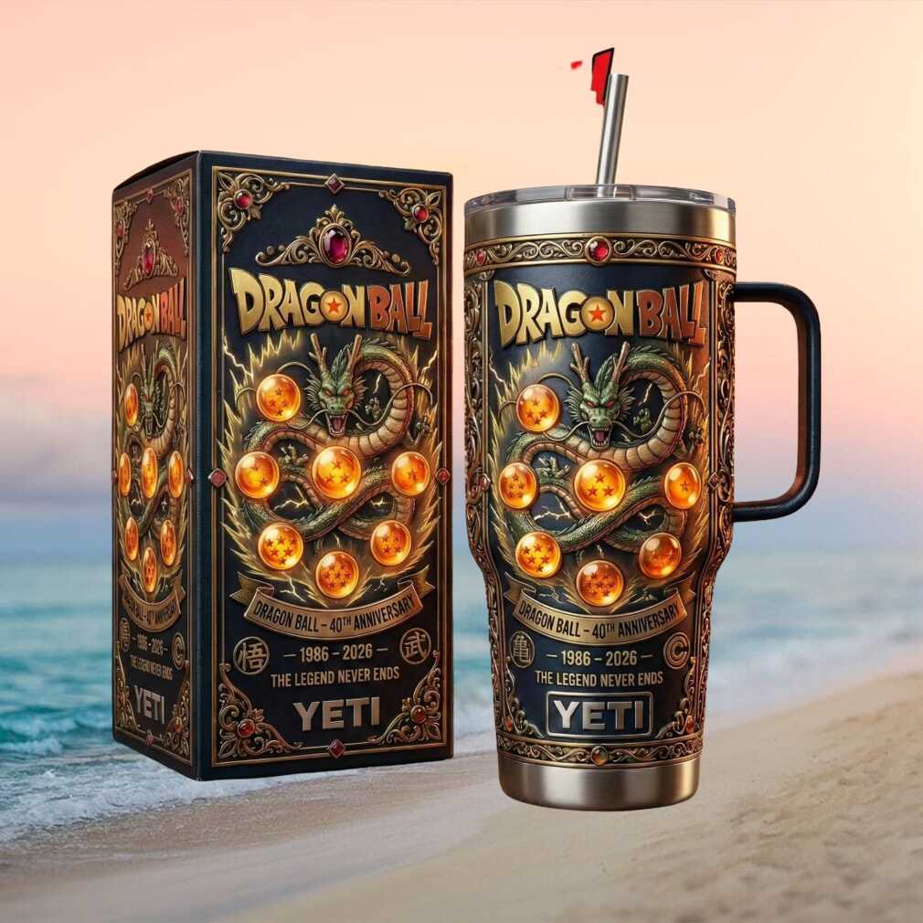 Make a wish! This limited edition Dragon Ball 40th anniversary tumbler features the eternal dragon Shenron encircled by all seven Dragon Balls in stunning collector-quality design. A sacred artifact for any Dragon Ball fan — 40oz insulated and worthy of any collection.