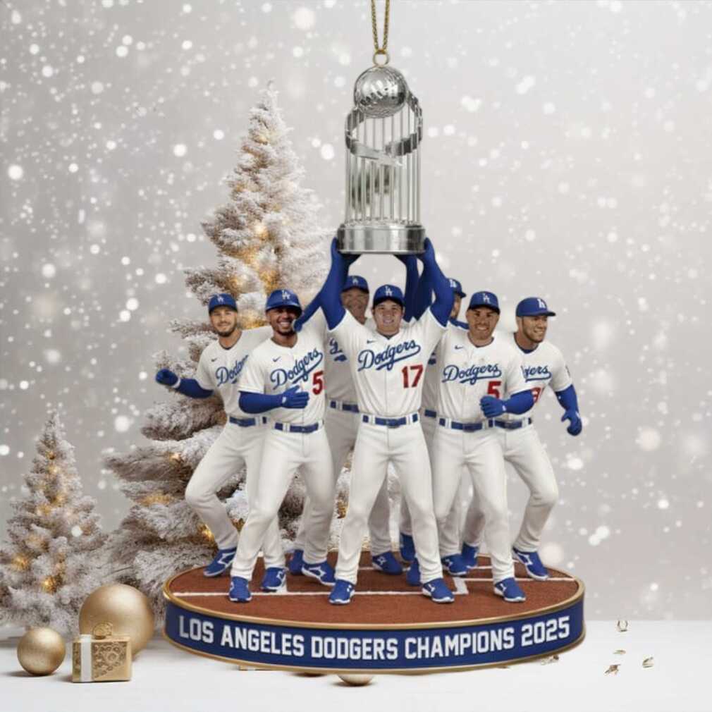 Celebrate the Los Angeles Dodgers’ triumphant 2025 World Series victory with this commemorative Christmas ornament! This ornament is a must-have for any die-hard Dodgers fan, serving as a lasting reminder of their championship season. Add a touch of Dodgers pride to your Christmas tree or surprise a fellow fan with this unique and collectible keepsake, marking a historic moment in baseball history.