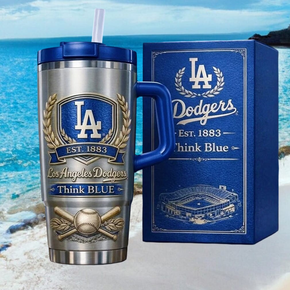 (Los Angeles Dodgers Est 1883 “Think Blue” Silver & Blue Baseball Tumbler)Los Angeles Dodgers Est 1883 “Think Blue” Silver & Blue Baseball Tumbler, Treat yourself or make a great gift for your loved ones