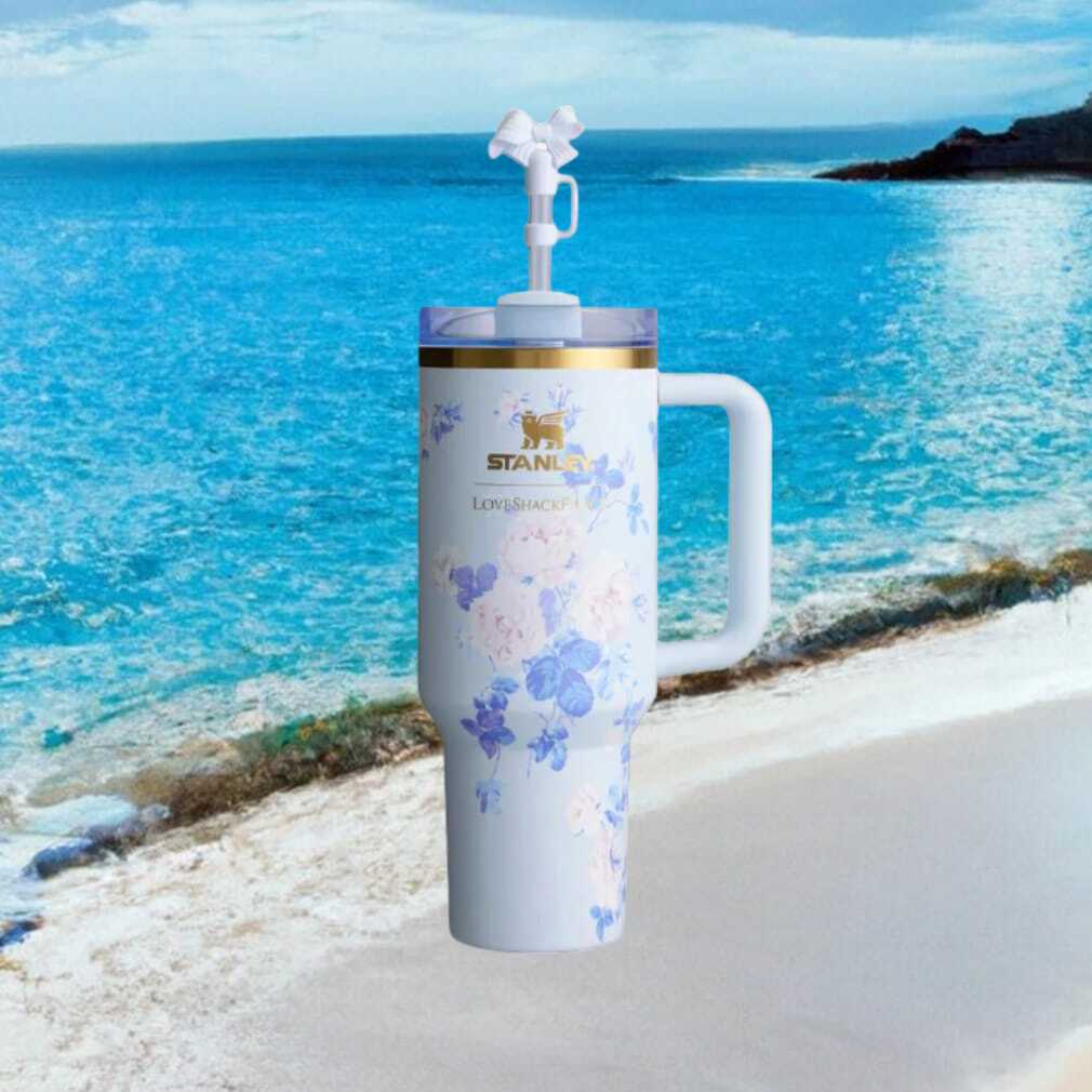 (LoveShackFancy x Stanley Quencher 40oz Tumbler Blooming Heirloom Floral Blue with Bow Straw Cover)LoveShackFancy x Stanley Quencher 40oz Tumbler Blooming Heirloom Floral Blue with Bow Straw Cover, Treat yourself or make a great gift for your loved ones