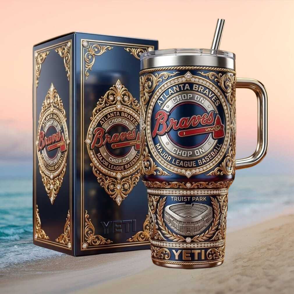 (Luxury Atlanta Braves Diamond Embossed 40oz Tumbler with Handle)Luxury Atlanta Braves Diamond Embossed 40oz Tumbler with Handle, Treat yourself or make a great gift for your loved ones