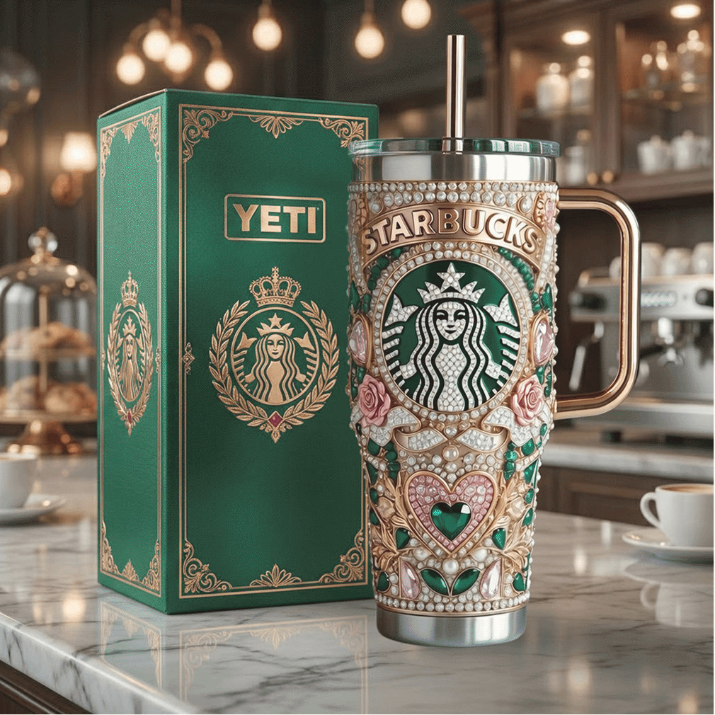 (Luxury Starbucks Emerald & Pearl 40oz Tumbler with Handle)Luxury Starbucks Emerald & Pearl 40oz Tumbler with Handle, Treat yourself or make a great gift for your loved ones