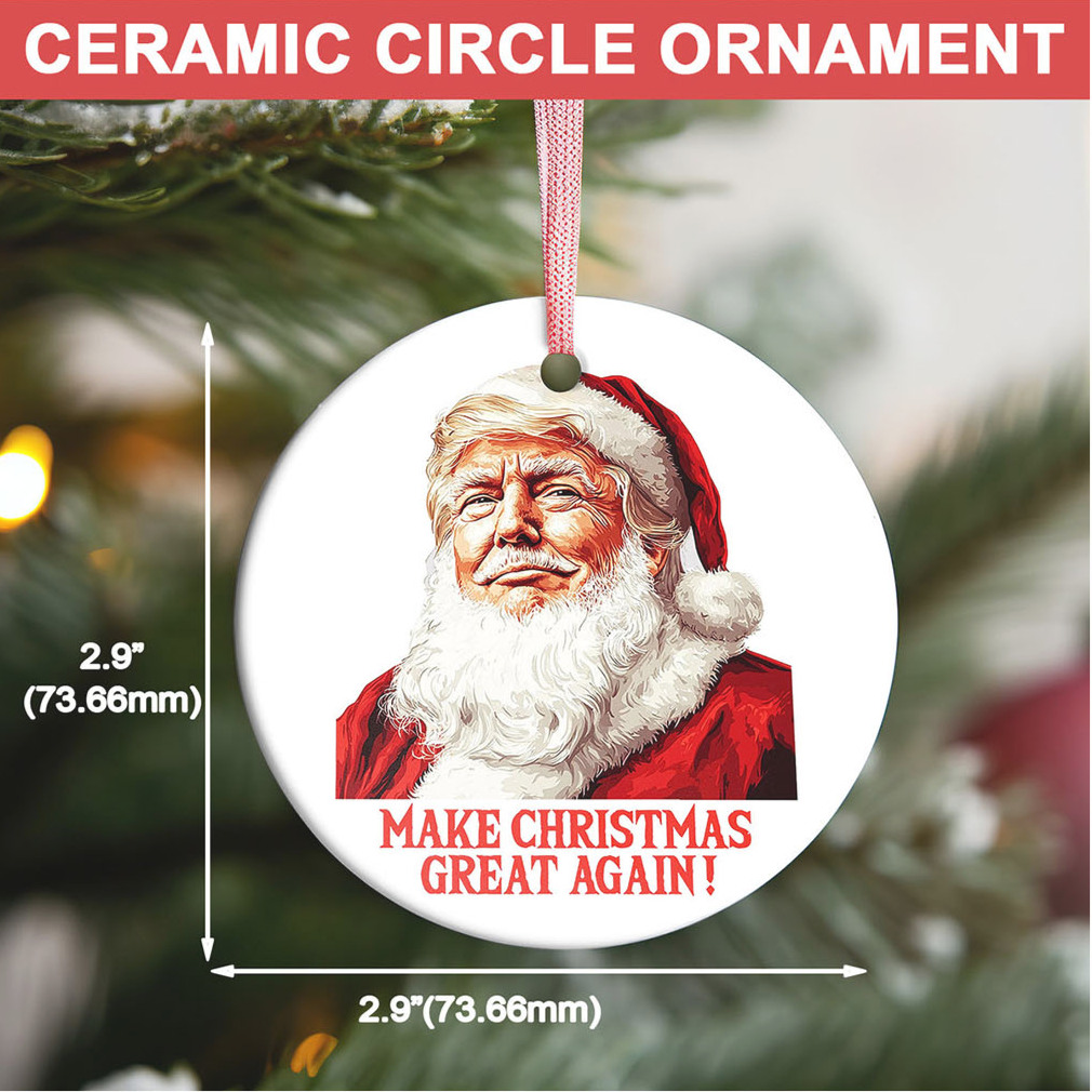 This Make Christmas Great Again Ceramic Ornament is a must-have for any proud Trump supporter. Featuring the iconic MAGA slogan, it’s guaranteed to make a statement. This ornament solves the problem of finding Christmas decorations that reflect your political views with a dose of humor. It’s more than just an ornament; it’s a symbol of your political beliefs, a festive conversation starter, and a memorable addition to your holiday traditions. Crafted from durable ceramic, this ornament is made to last for many Christmases to come. See First images from the product to make the content more vivid.
