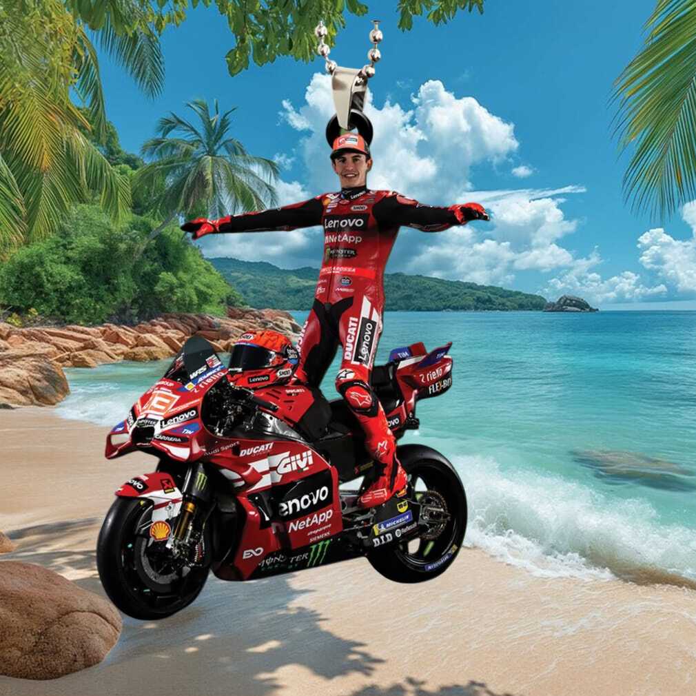 (Marc Marquez Standing on Ducati Lenovo MotoGP Bike Victory Car Hanging Ornament)🥤 About Marc Marquez Standing on Ducati Lenovo MotoGP Bike Victory Car Hanging Ornament