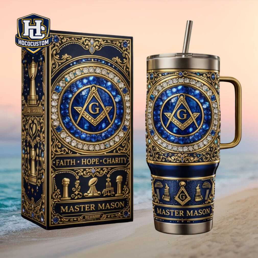 (Master Mason “Faith Hope Charity” 3D Masonic Emblem 40oz Tumbler)