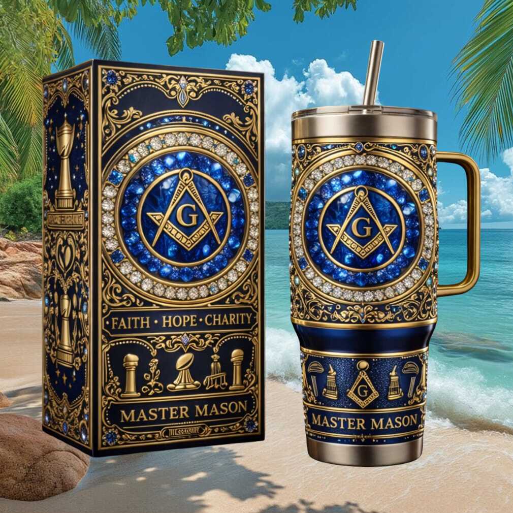 A distinguished luxury tumbler for Master Masons and Freemasonry enthusiasts. Adorned with iconic Masonic symbols, the Square and Compass, and the tenets of Faith, Hope, and Charity in rich blue and gold tones. An ideal gift for lodge brothers or as a collector’s keepsake. 40oz vacuum-insulated stainless steel construction.