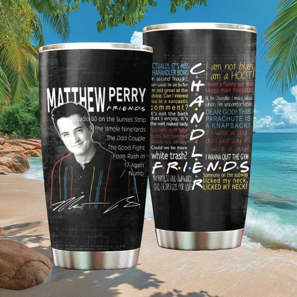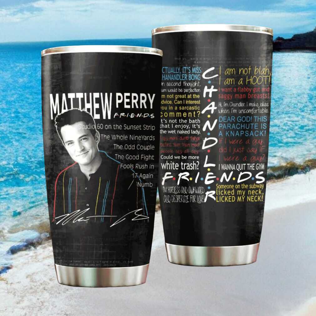 Matthew Perry “Chandler” Tribute Black Tumbler Iconic Quotes & Filmography, Treat yourself or make a great gift for your loved ones