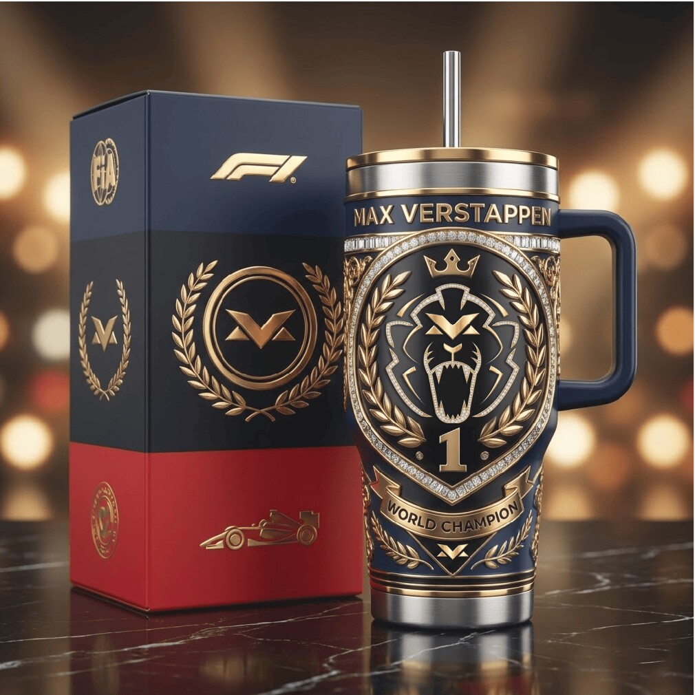 (Max Verstappen F1 World Champion #1 Gold & Navy Collector’s Tumbler)ver your routine.