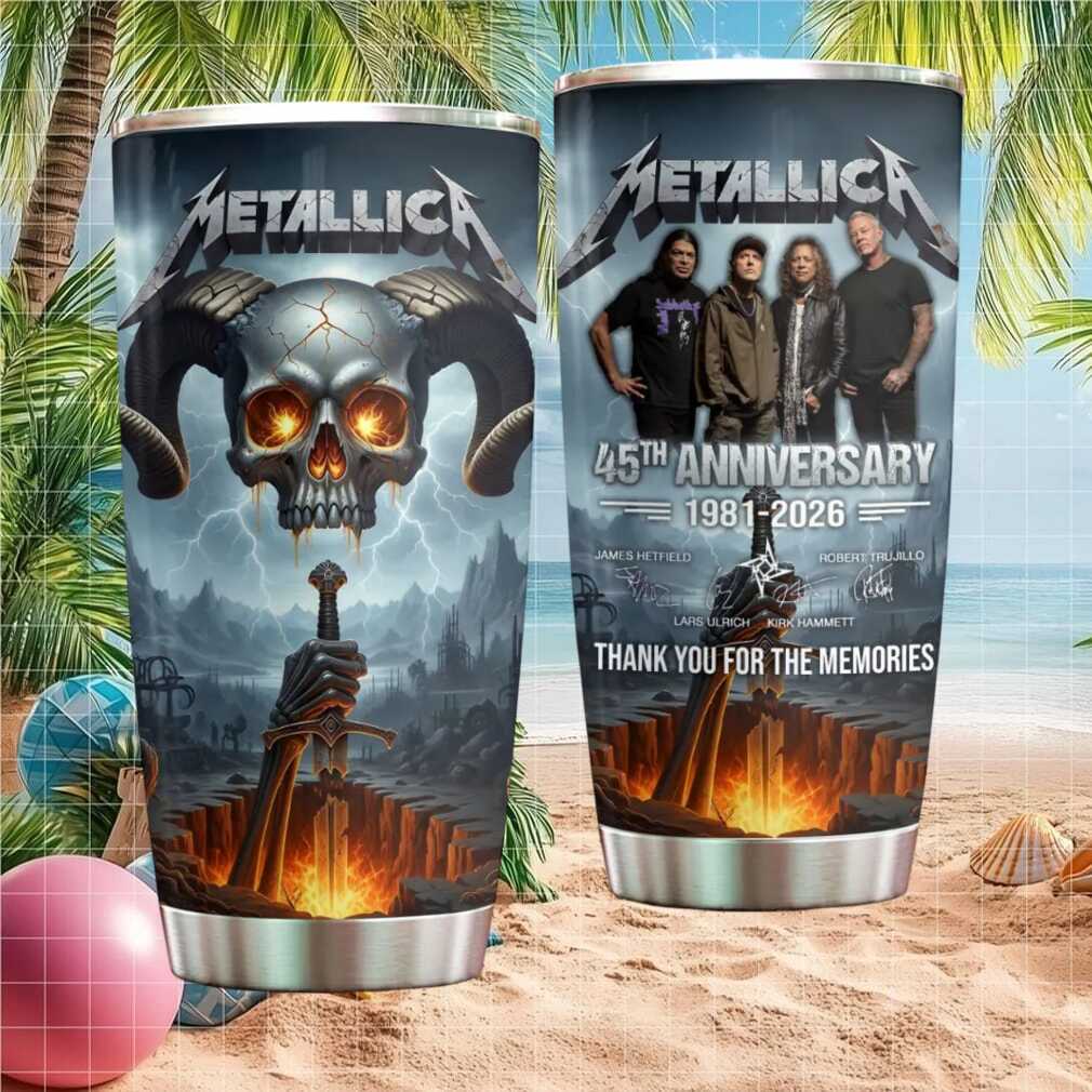 (Metallica 45th Anniversary 1981 2026 Horned Skull & Band Signatures Tumbler)Metallica 45th Anniversary 1981 2026 Horned Skull & Band Signatures Tumbler, Treat yourself or make a great gift for your loved ones
