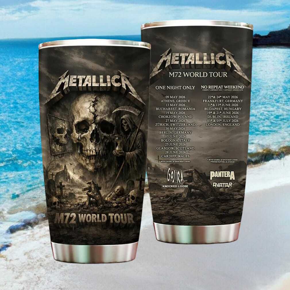 (Metallica M72 World Tour 2026 European Tour Dates Skull Design Tumbler)Metallica M72 World Tour 2026 European Tour Dates Skull Design Tumbler, Treat yourself or make a great gift for your loved ones