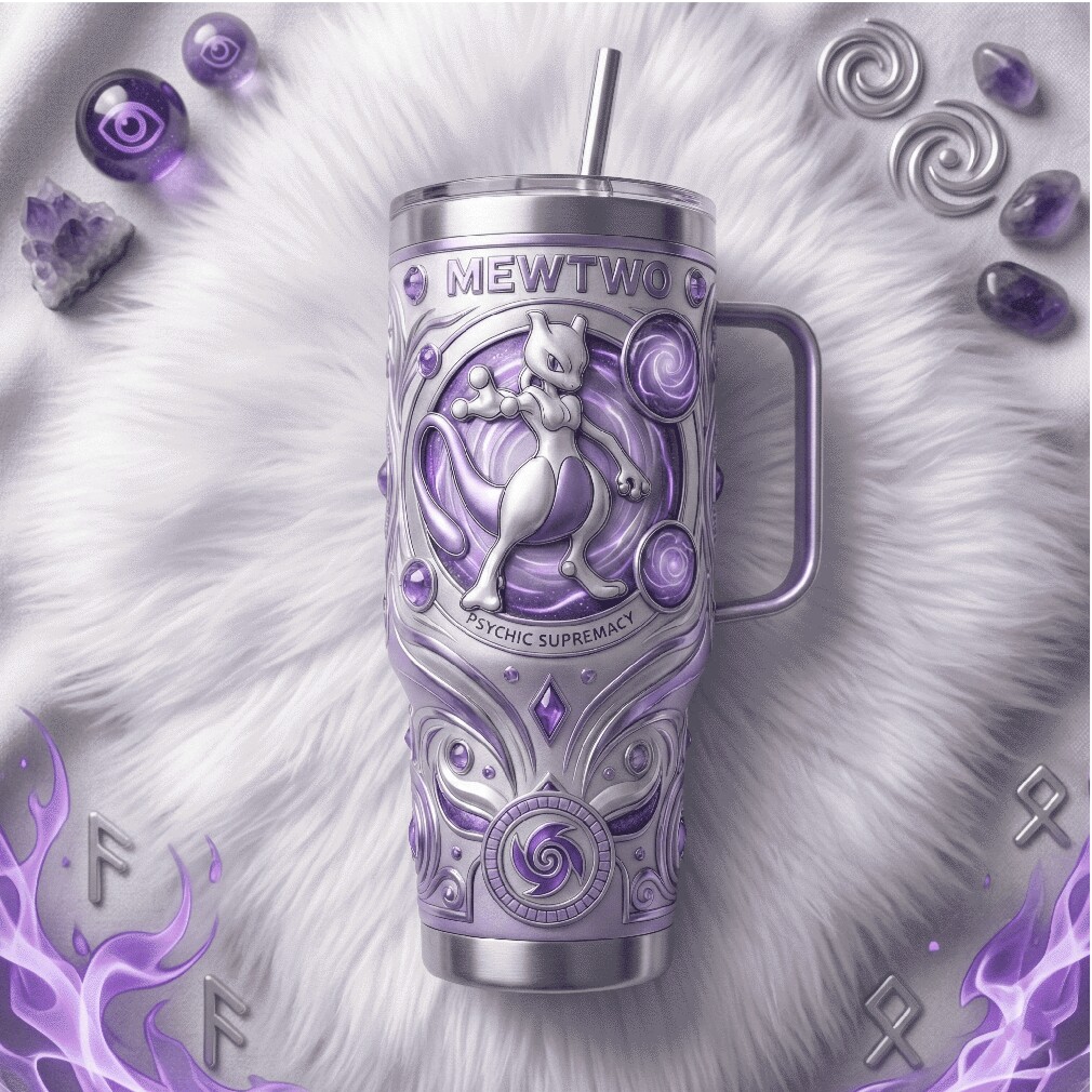 (Mewtwo Pokemon Psychic Supremacy 40oz 3D Embossed Tumbler)Mewtwo Pokemon Psychic Supremacy 40oz 3D Embossed Tumbler, Treat yourself or make a great gift for your loved ones