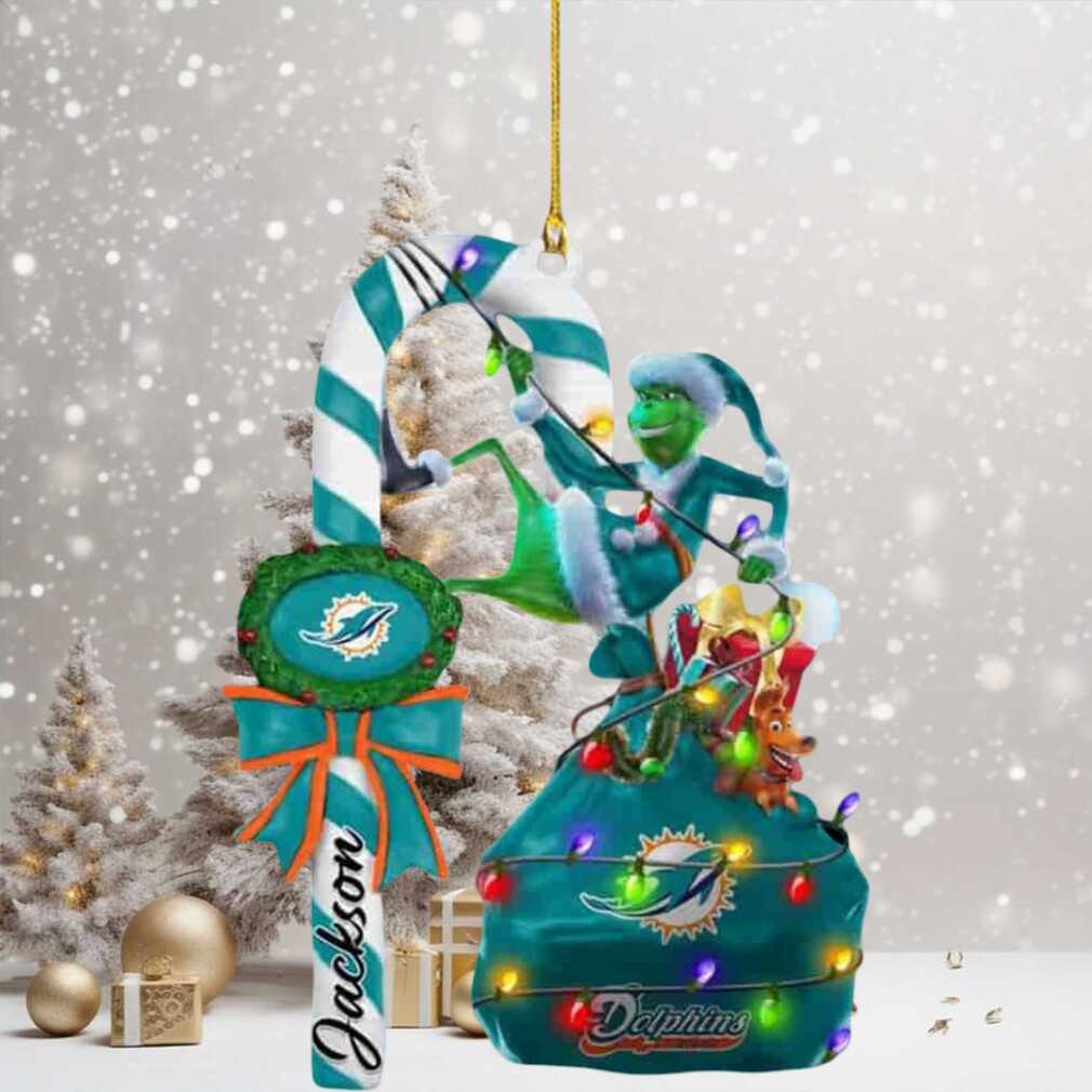 Who Rocks This Best with Miami Dolphins NFL Custom Name Grinch Candy Cane Tree Decorations Ornament