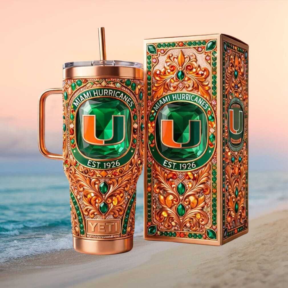 🥤 About Miami Hurricanes EST 1926 Luxury 3D Emerald Gemstone & Gold Filigree Tumbler