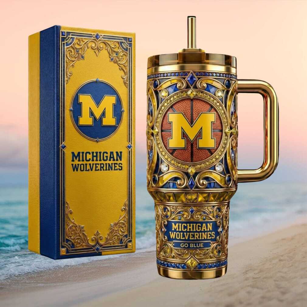 (Michigan Wolverines Go Blue NCAA Basketball 3D Embossed Insulated Tumbler & Gift Box)Michigan Wolverines Go Blue NCAA Basketball 3D Embossed Insulated Tumbler & Gift Box, Treat yourself or make a great gift for your loved ones
