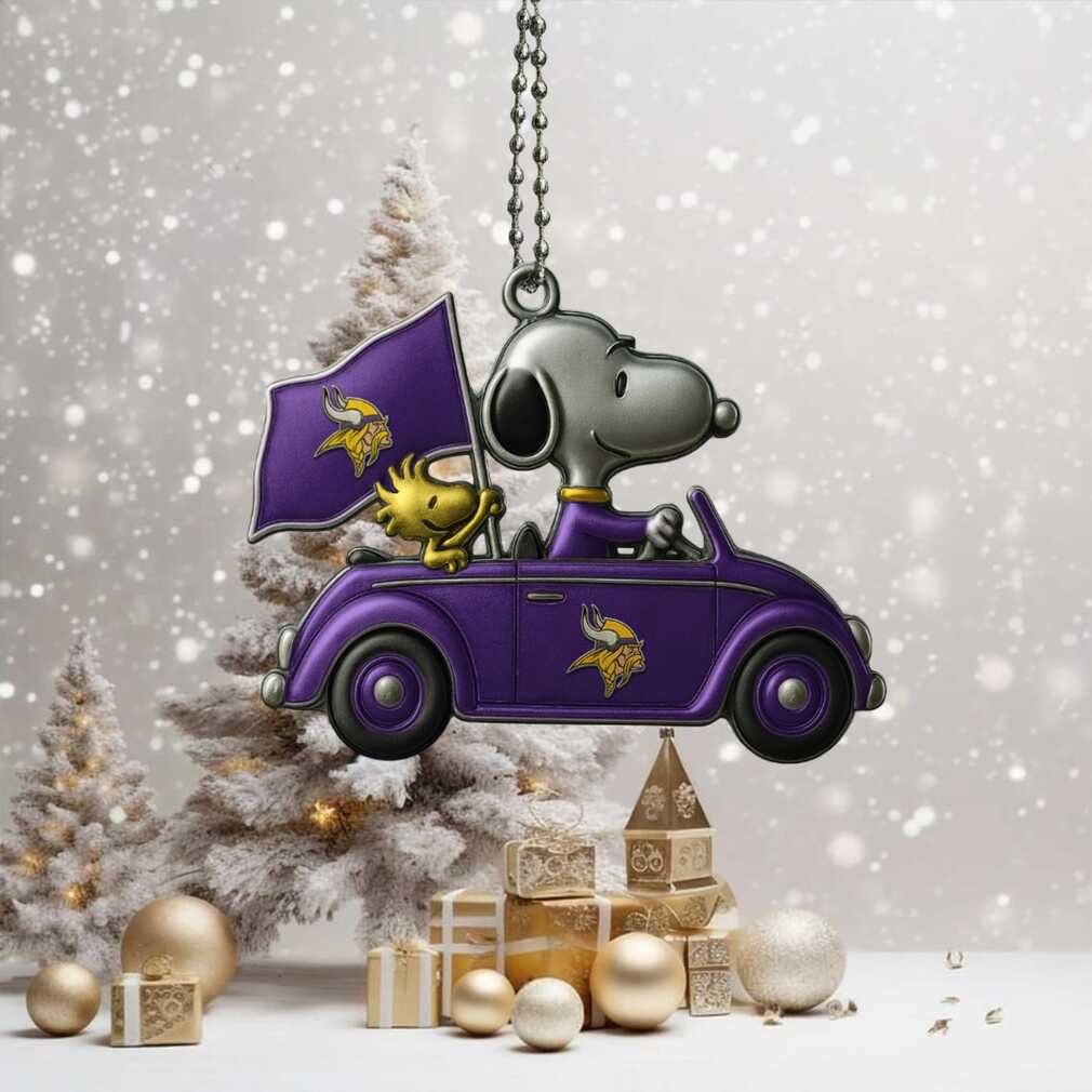 🥤 About Minnesota Vikings Snoopy & Woodstock Car or Christmas Ornament
