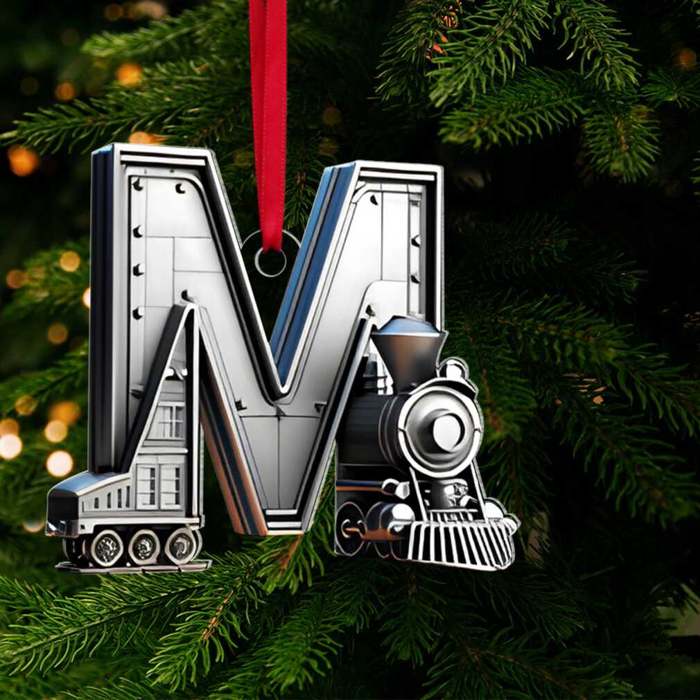 Who Rocks This Best with Monogram M Locomotive Christmas Ornament