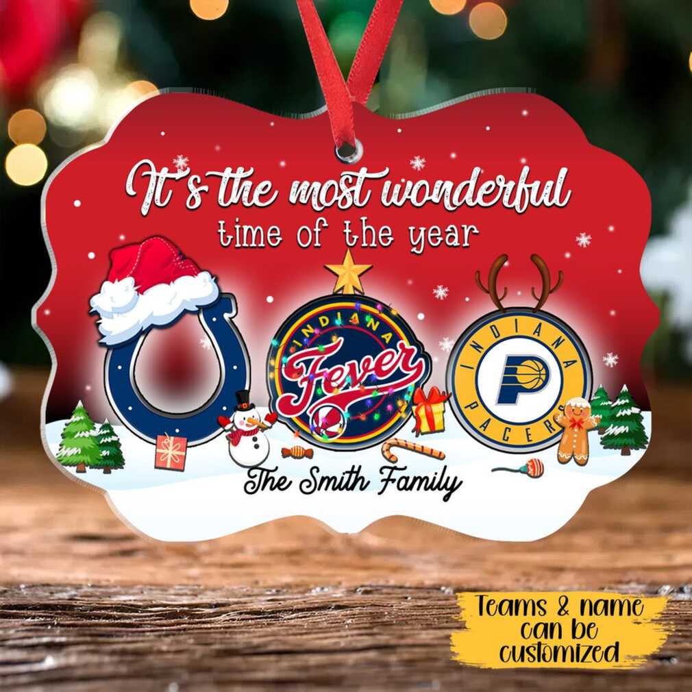 This Most Wonderful Time Personalized Pacers & Colts Family Ornament lets you showcase your love for Indiana sports and family. Perfect for passionate Pacers and Colts supporters, it brings a unique and festive spirit to your Christmas tree. It solves the problem of finding generic ornaments and creates a memorable keepsake for years to come. Made from durable materials, ensuring it lasts for many holiday seasons. Check the product images to see how it will look on your Christmas tree.