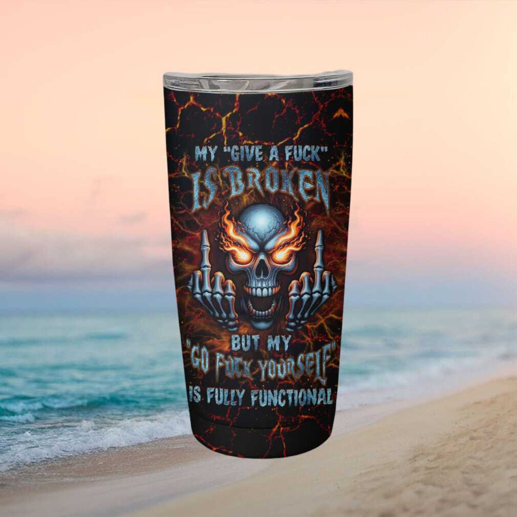 (My Give A Fuck Is Broken Flaming Blue Skull Fire and Ice Sarcastic Tumbler)