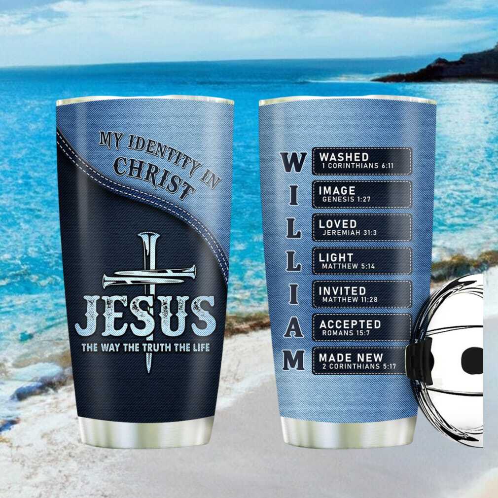 (My Identity in Christ Personalized Denim Style Tumbler Jesus Way Truth Life)My Identity in Christ Personalized Denim Style Tumbler Jesus Way Truth Life, Treat yourself or make a great gift for your loved ones