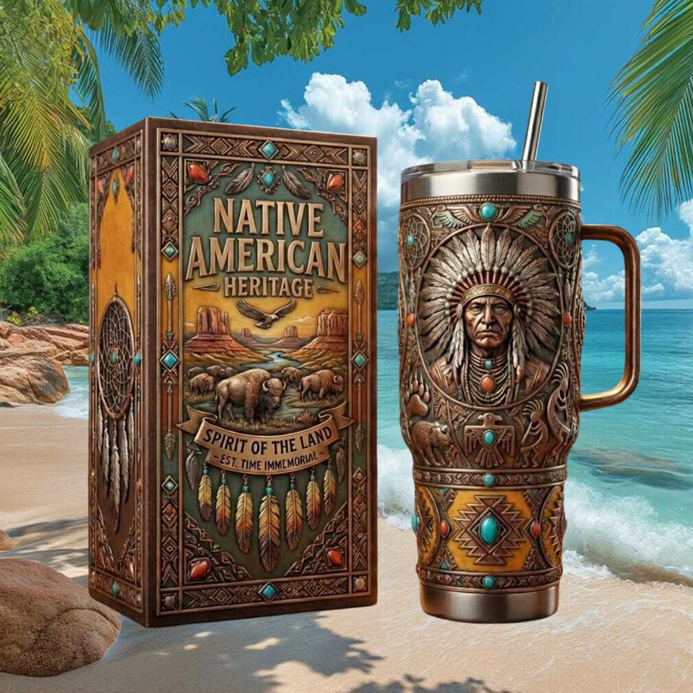 (Native American Heritage Spirit of the Land 3D Embossed 40oz Tumbler)Native American Heritage Spirit of the Land 3D Embossed 40oz Tumbler, Treat yourself or make a great gift for your loved ones