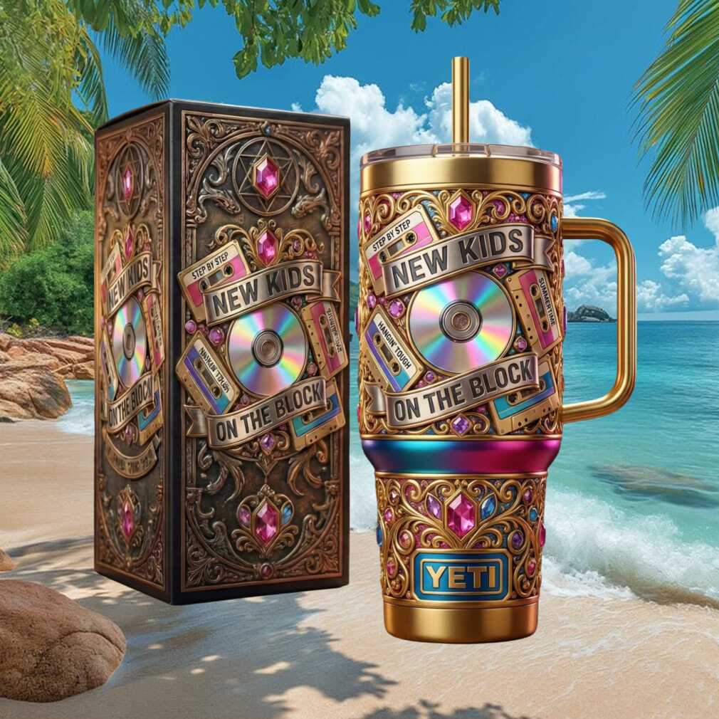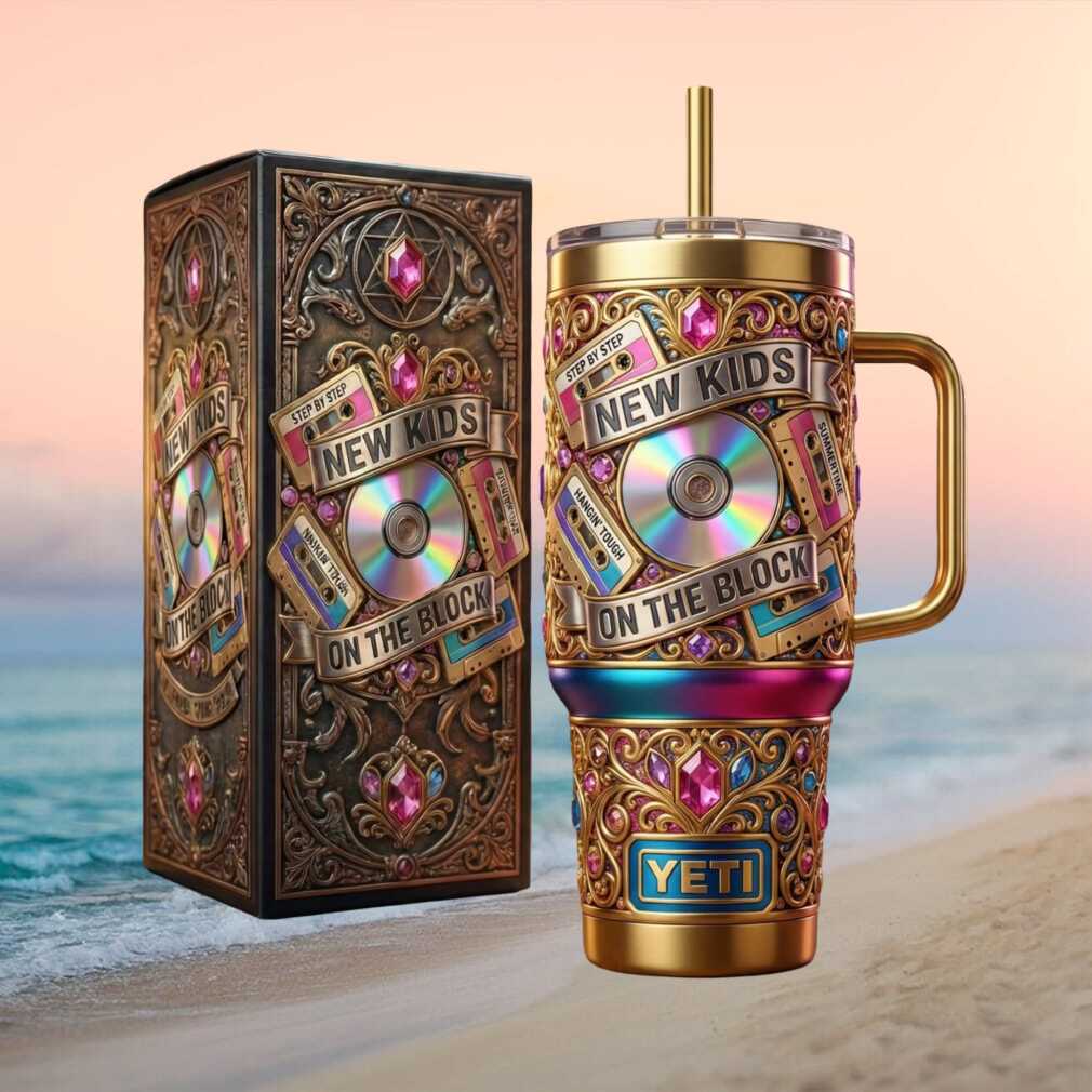 🥤 About New Kids On The Block NKOTB Step By Step Retro Cassette Gold Tumbler