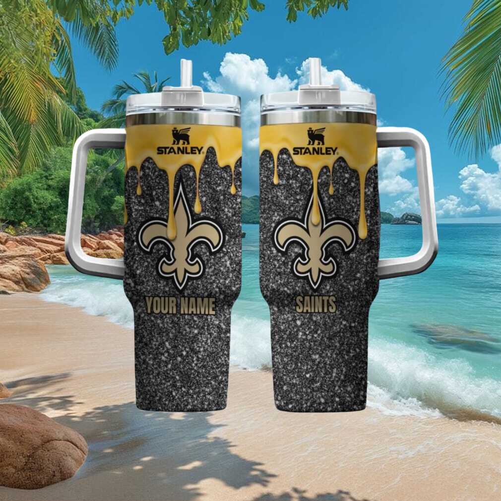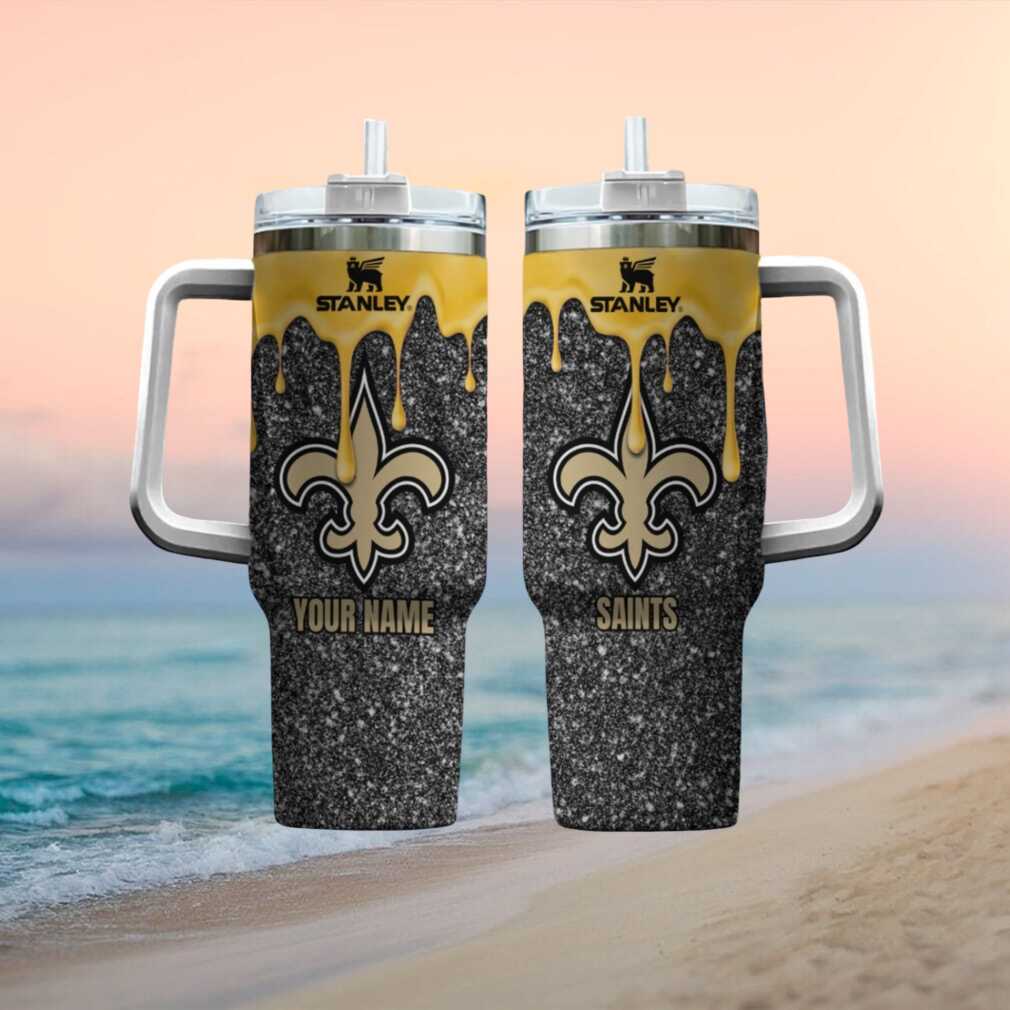 (New Orleans Saints Custom Name Black Glitter Drip 40oz Tumbler Personalized NFL Gift)