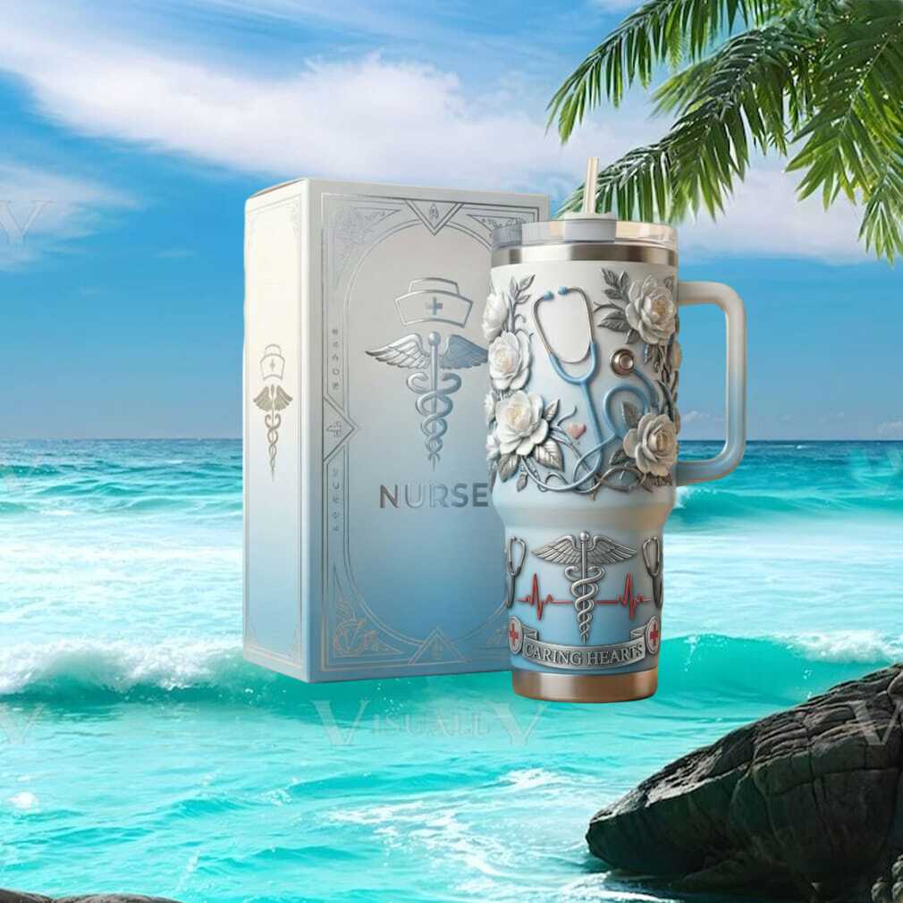 (Nurse Appreciation Caring Hearts 3D Floral Stethoscope Custom Gift Tumbler)Nurse Appreciation Caring Hearts 3D Floral Stethoscope Custom Gift Tumbler, Treat yourself or make a great gift for your loved ones