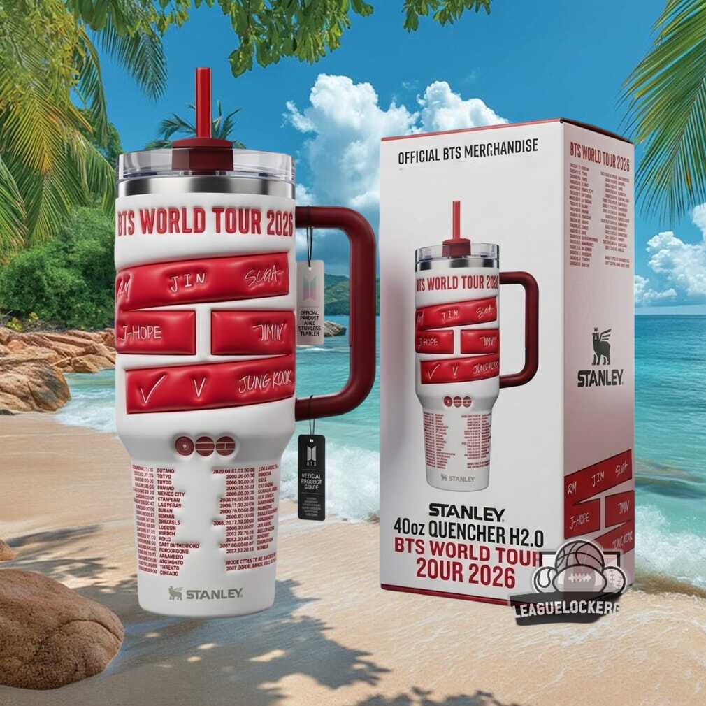 ARMY unite! This official-style BTS World Tour 2026 Stanley-style quencher is the ultimate fan companion. 40oz double-wall insulation with bold BTS artwork makes it perfect for concerts, commutes, and everything in between. A must-have for dedicated fans.