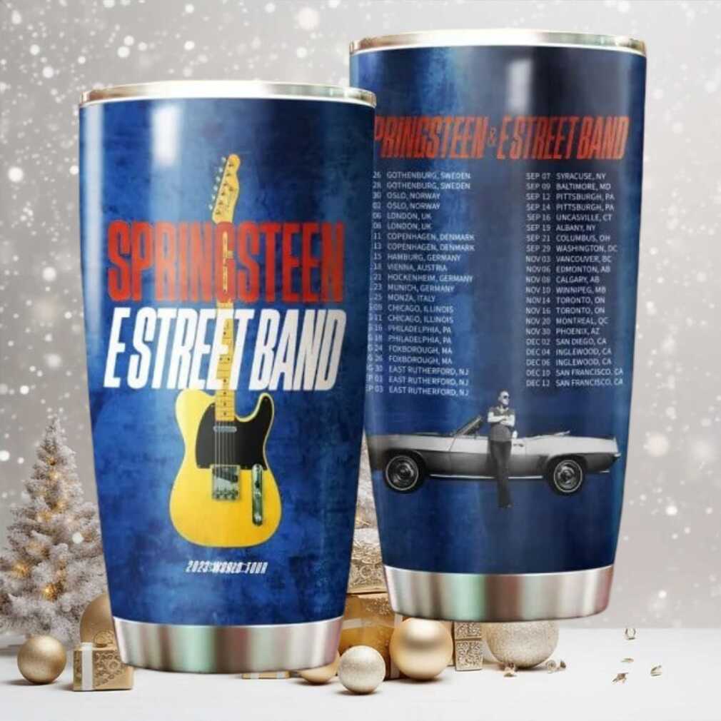 This tumbler isn’t just about holding your favorite beverage; it’s a piece of rock history. Featuring the official 2023 tour dates, it’s a tangible connection to the unforgettable performances of Bruce Springsteen and the E Street Band. Built with high-quality insulated stainless steel, it ensures your cold drinks stay frosty and hot beverages remain warm for hours. Its durable design and comfortable grip make it your perfect companion for any adventure, from the mosh pit to the morning commute.