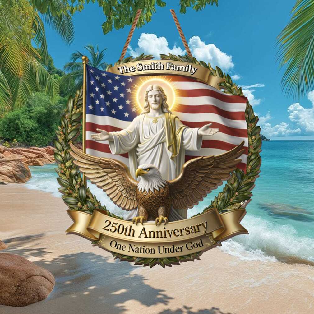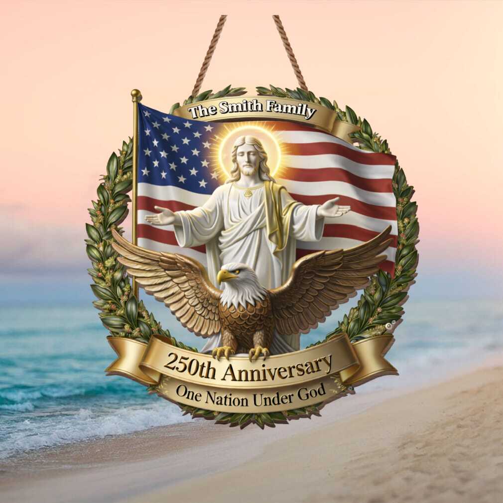 ‘One Nation Under God’ — this faith-inspired family ornament blends patriotism and spirituality, featuring Jesus, the American eagle, and the flag for the 250th anniversary. A meaningful keepsake for Christian families who celebrate both their faith and their love for America.