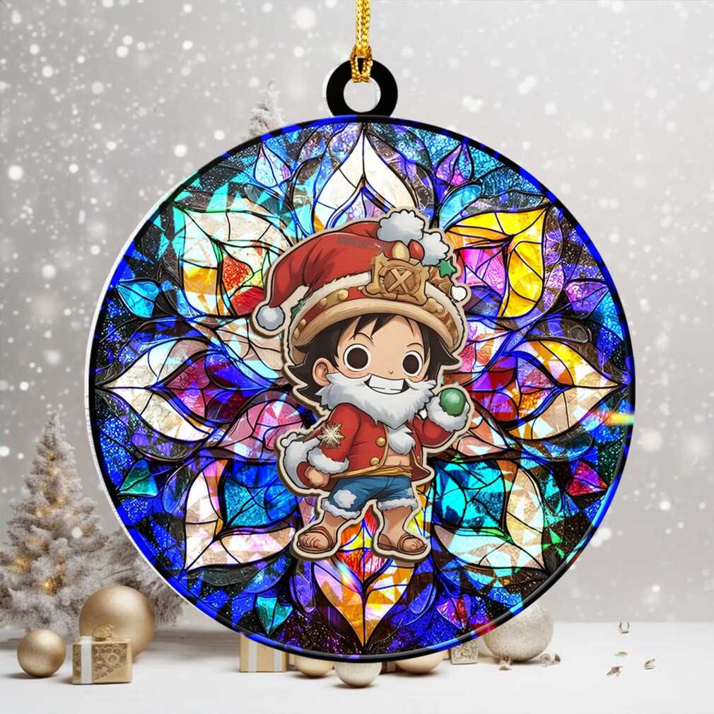 🥤 About One Piece Luffy Santa Stained Glass Hologram Christmas Ornament