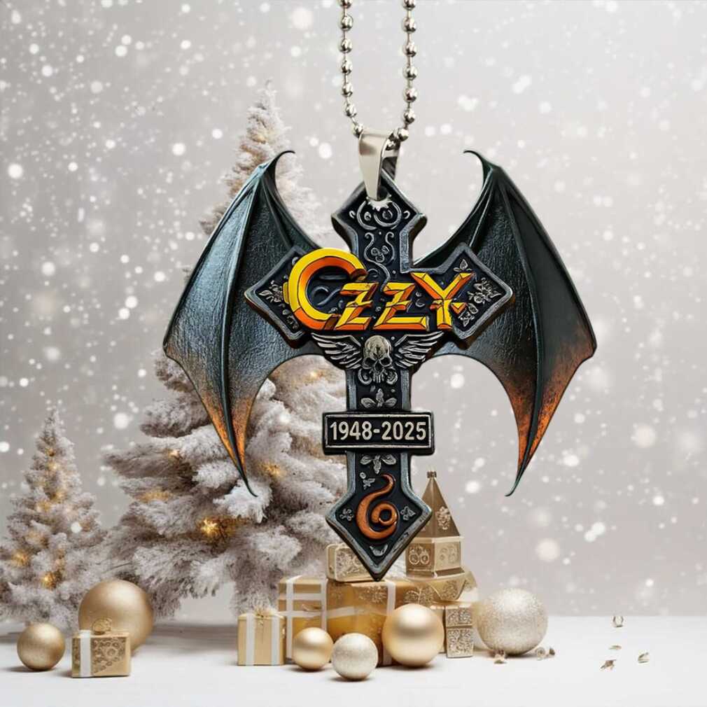 Pay tribute to a rock legend with this Ozzy Osbourne Bat Wing Cross Commemorative Ornament! Featuring the iconic bat wing cross design and the years 1948-2025, this ornament honors Ozzy’s incredible journey. A must-have for any dedicated fan.
