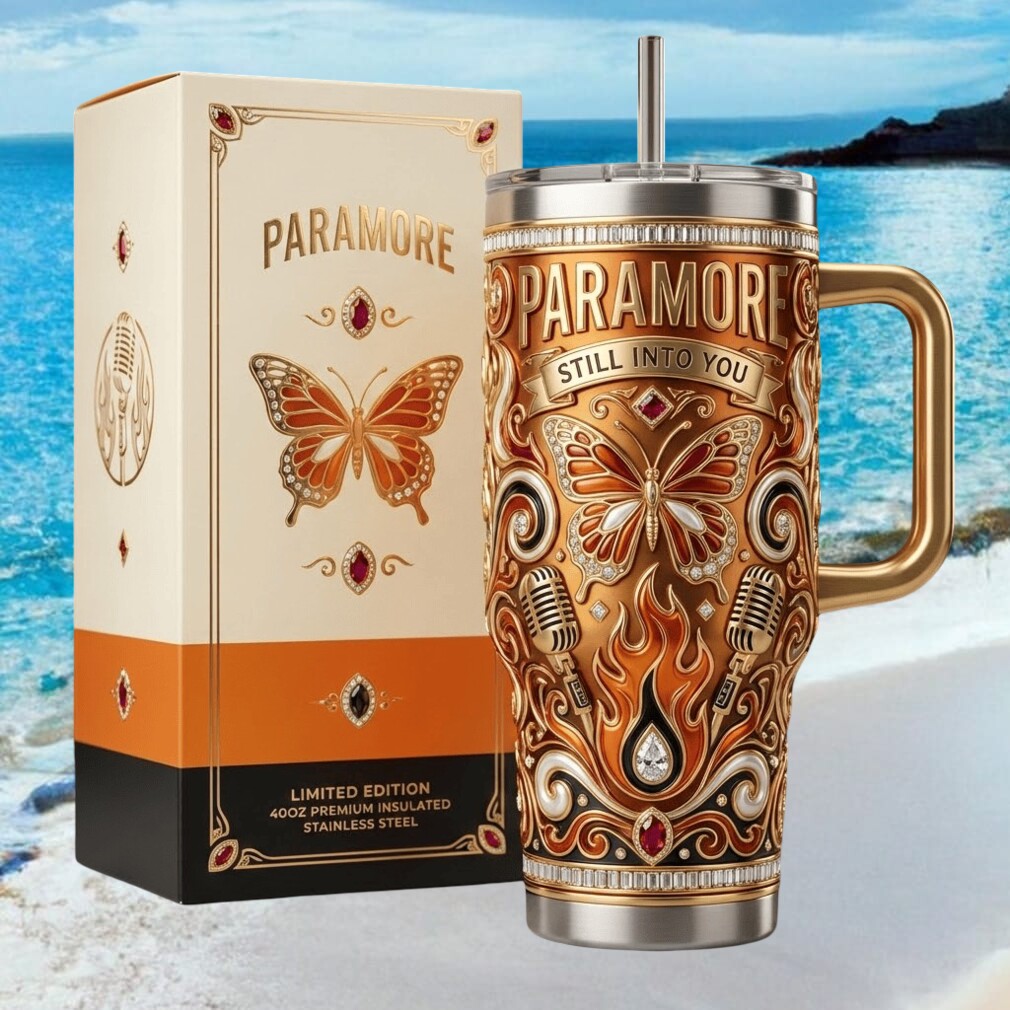 (Paramore “Still Into You” Butterfly Gold Filigree Luxury Tumbler)Paramore “Still Into You” Butterfly Gold Filigree Luxury Tumbler, Treat yourself or make a great gift for your loved ones