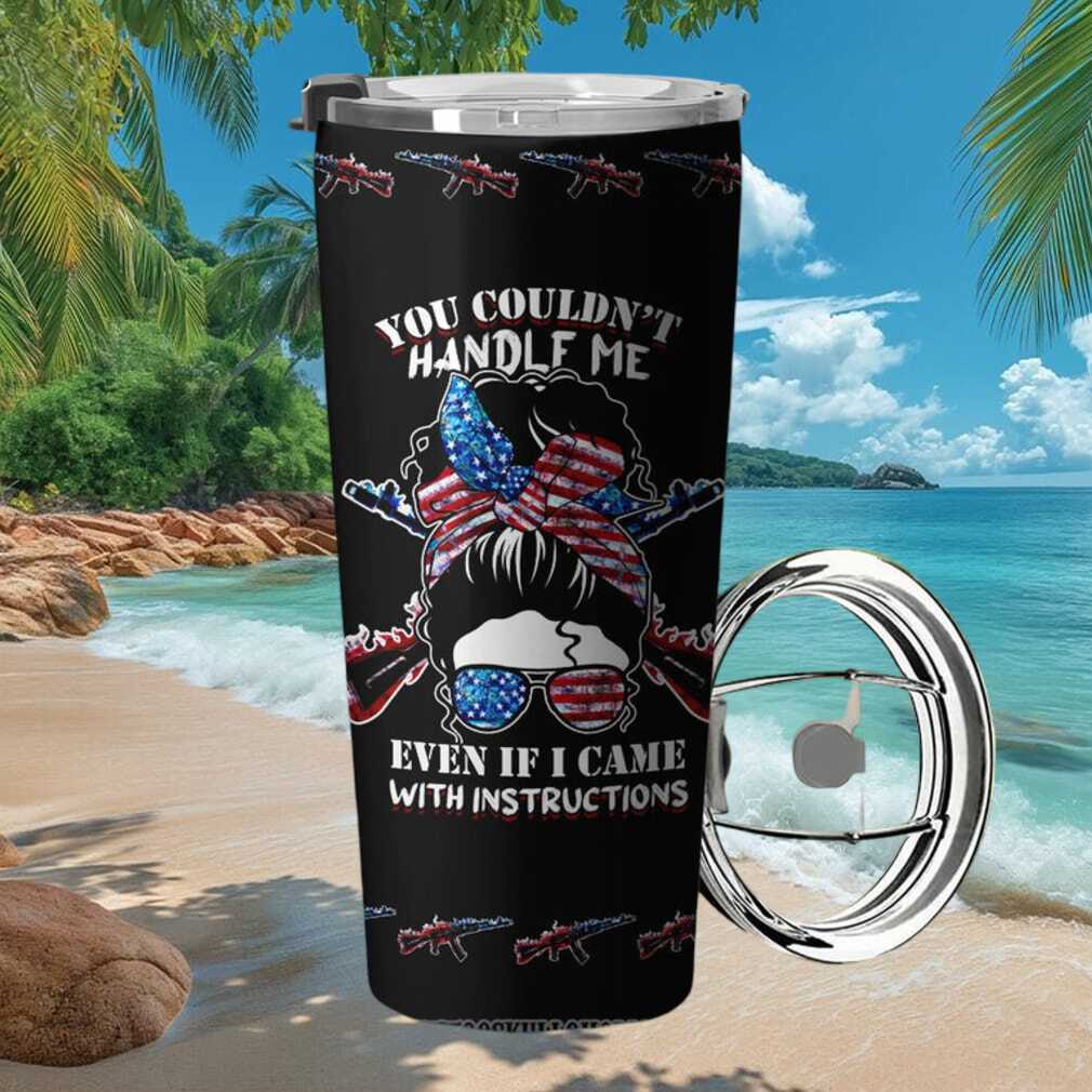 🥤 About Patriotic Messy Bun American Flag Sunglasses Skull Tumbler