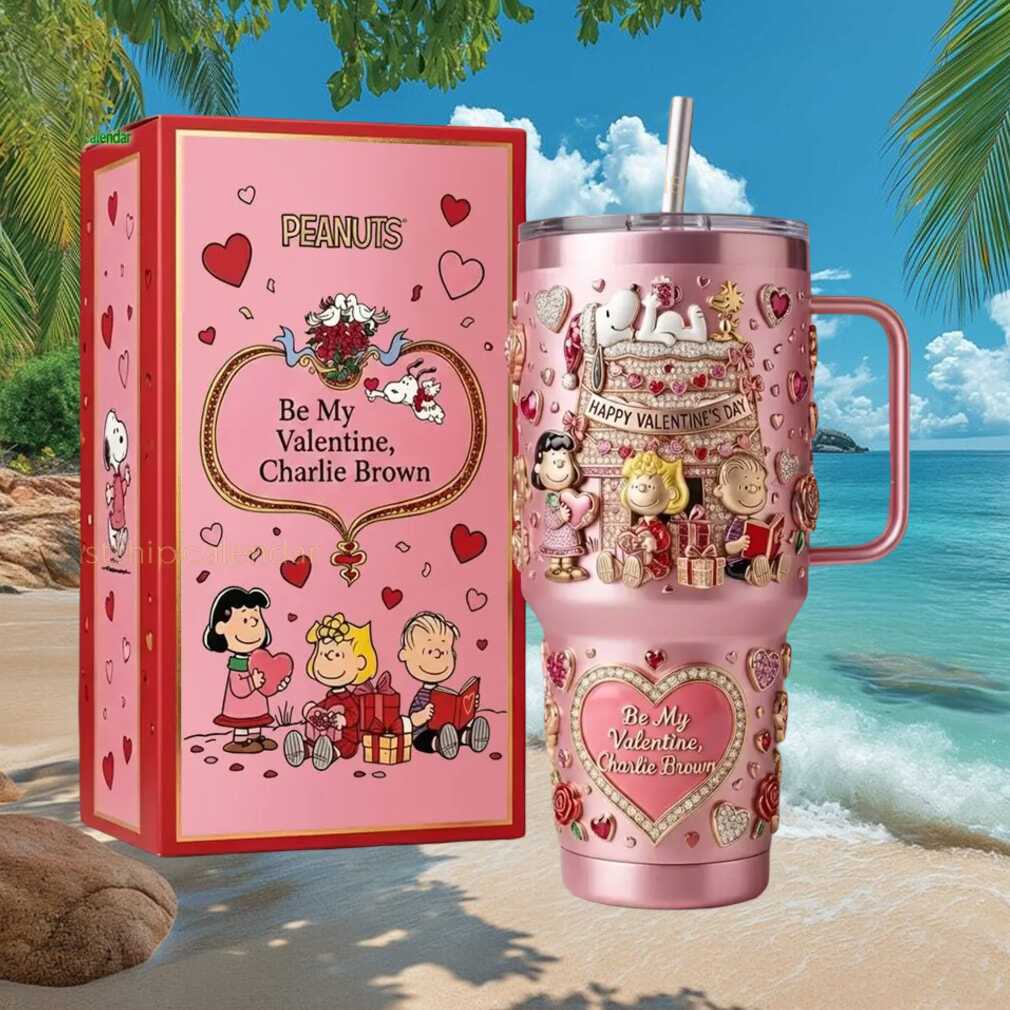 (Peanuts Charlie Brown & Friends Valentine’s Day Pink Embossed Tumbler)🥤 About Peanuts Charlie Brown & Friends Valentine’s Day Pink Embossed Tumbler