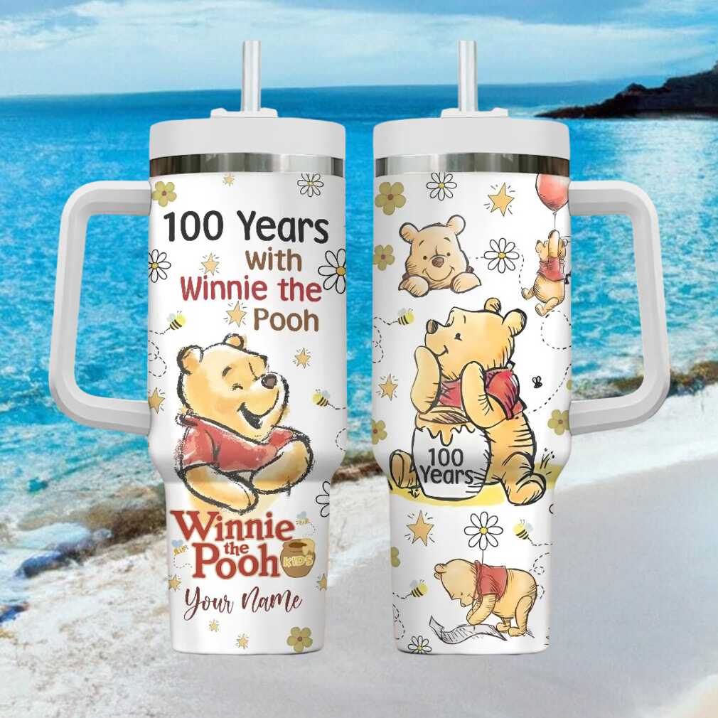 (Personalized 100 Years of Winnie the Pooh 40oz Tumbler with Handle)Personalized 100 Years of Winnie the Pooh 40oz Tumbler with Handle, Treat yourself or make a great gift for your loved ones