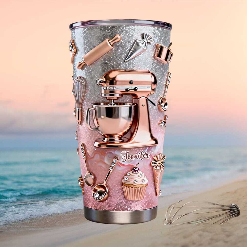🥤 About Personalized Baker's Delight Rose Gold Kitchen Mixer Glitter Tumbler