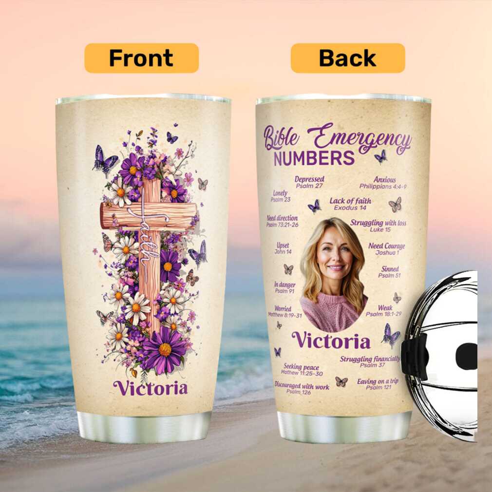 (Personalized Bible Emergency Numbers Faith Cross & Photo Travel Mug)Personalized Bible Emergency Numbers Faith Cross & Photo Travel Mug, Treat yourself or make a great gift for your loved ones