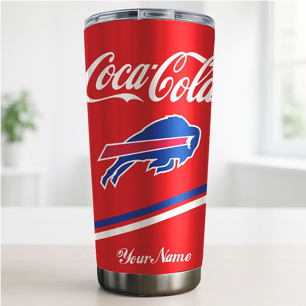 (Personalized Buffalo Bills x Coca Cola Logo Tumbler with Name)Personalized Buffalo Bills x Coca Cola Logo Tumbler with Name, Treat yourself or make a great gift for your loved ones