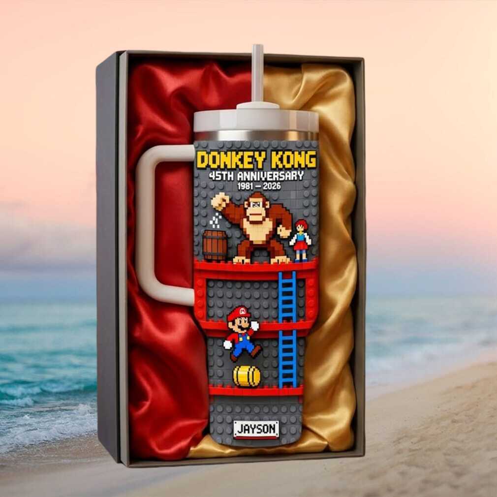 It’s on like Donkey Kong! This personalized 45th Anniversary retro pixel art 40oz tumbler celebrates the iconic video game legend. Custom name options and classic arcade artwork on premium double-wall insulated stainless steel — perfect for old-school gamers.