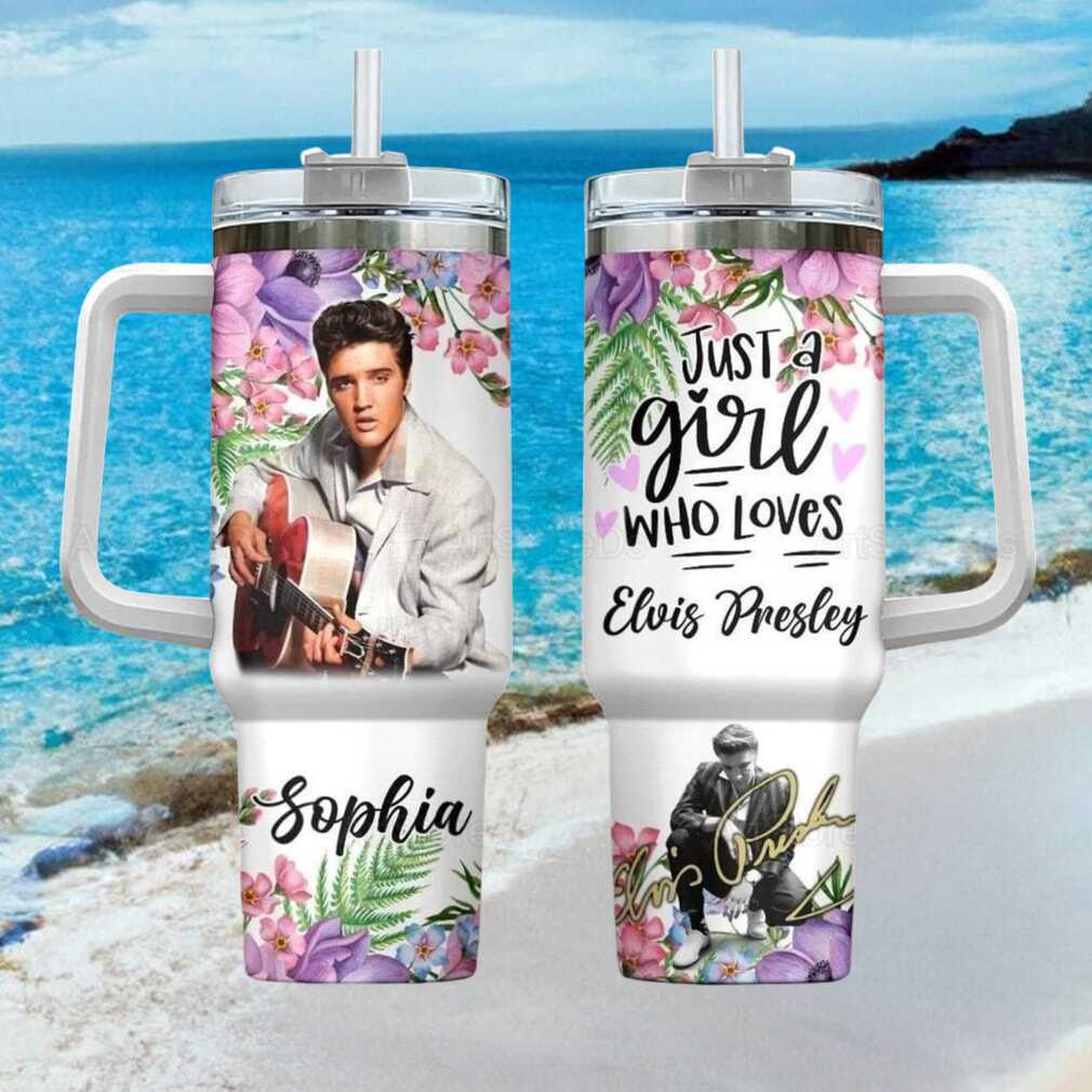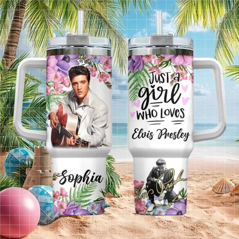 (Personalized Floral Elvis Presley “Just A Girl Who Loves Elvis” 40oz Tumbler)Personalized Floral Elvis Presley “Just A Girl Who Loves Elvis” 40oz Tumbler, Treat yourself or make a great gift for your loved ones